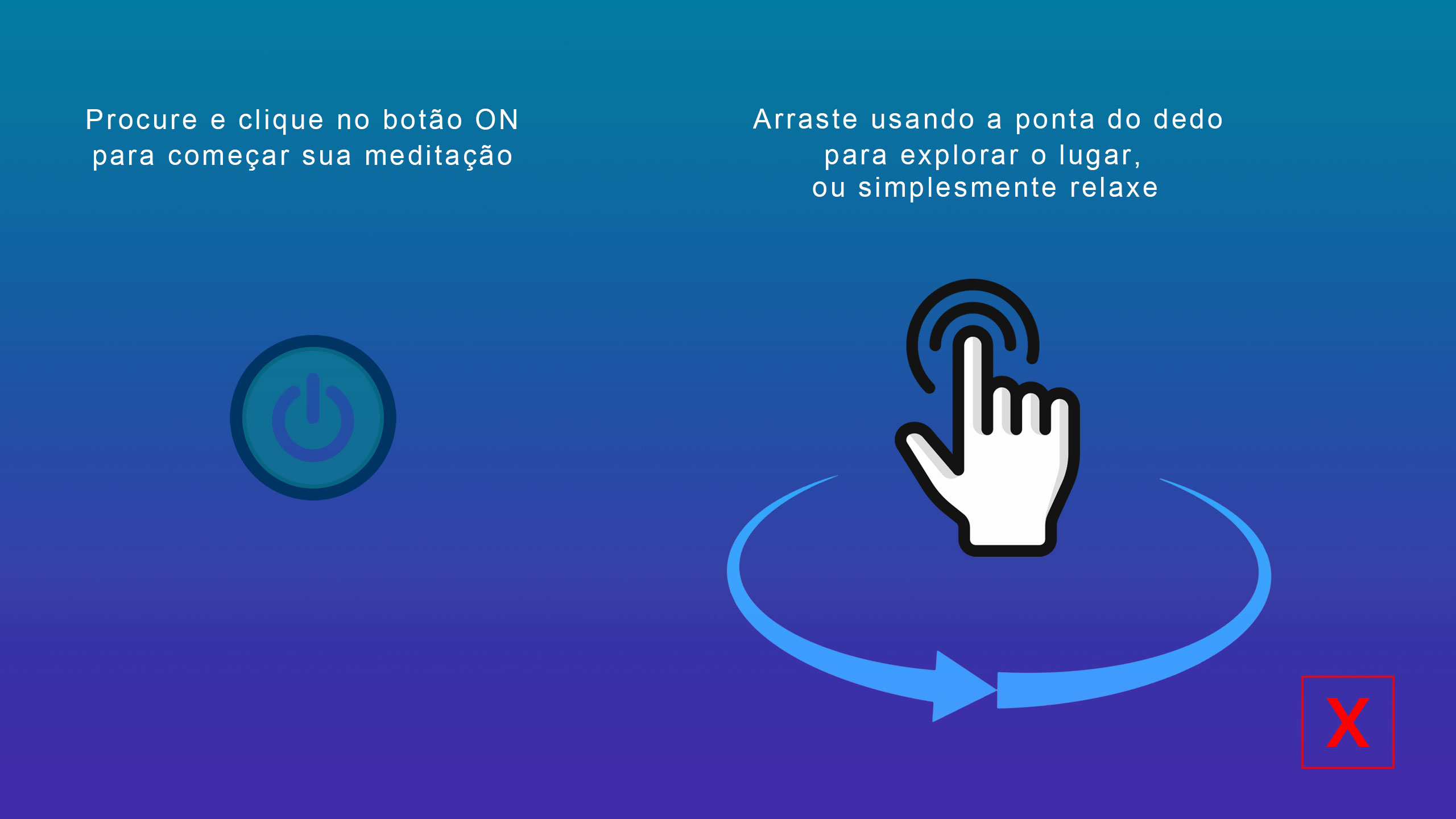 Para sair do seu retiro virtual após o término da meditação, basta clicar e arrastar para baixo, clicando no ícone da “casinha”.